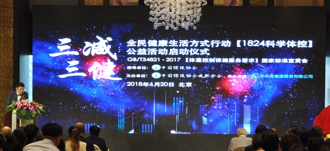 為積極響應(yīng)國家衛(wèi)計(jì)委、體育總局、全國總工會(huì)、共青團(tuán)中央和全國婦聯(lián)共同制定的《全民健康生活方式行動(dòng)總方案(2017-2025)》精神的總目標(biāo),宣傳“減鹽、減油、減糖”的健康理念,提高全民 “健康的口腔、健康的體重、健康的骨骼”的保健知識(shí),以達(dá)到提高人民群眾健康生活水平的目的,同時(shí)為配合《體重控制保健服務(wù)要求》國家標(biāo)準(zhǔn)正式實(shí)施。中國保健協(xié)會(huì)減肥分會(huì)與深圳美嘉康貿(mào)易有限公司于2018620日成功舉行了“‘三減三建’全民健康生活方式行動(dòng)1824科學(xué)體控公益活動(dòng)啟動(dòng)暨GB/T 34821-2017 《體重控制保健服務(wù)要求》國家標(biāo)準(zhǔn)宣貫會(huì)”。