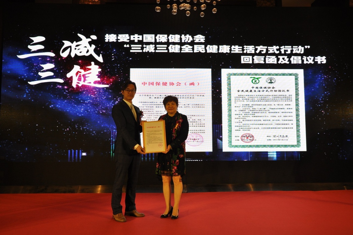 中國保健協(xié)會(huì)副理事長、全國保健服務(wù)標(biāo)準(zhǔn)化技術(shù)委員會(huì)專家副主任委員李萍向深圳美嘉康貿(mào)易有限公司頒發(fā)了“中國保健協(xié)會(huì)全民健康生活方式行動(dòng)倡議書”與活動(dòng)的批復(fù)。